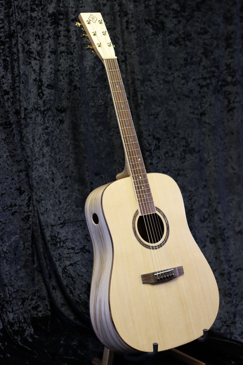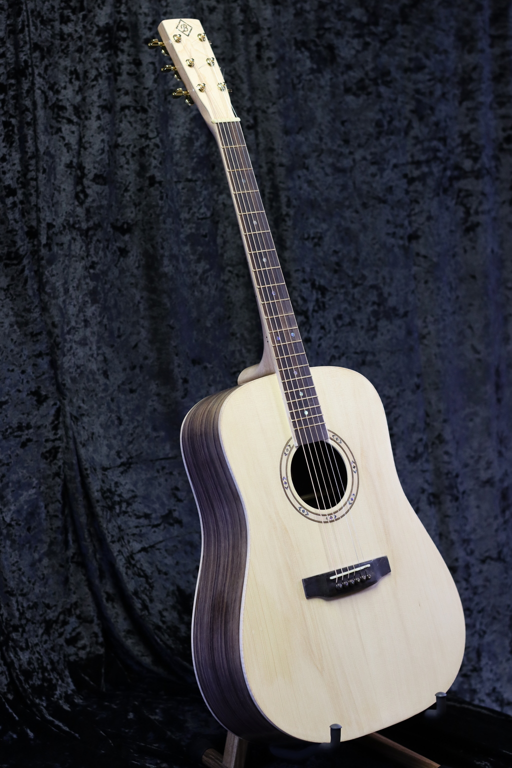 Our current line-up consists of Dreadnought style guitars, each with custom voiced traditional X bracing, utilizing both modern and traditional neck shapes and radiuses which providing a more familiar feel for the player with exceptional tonality and quality.