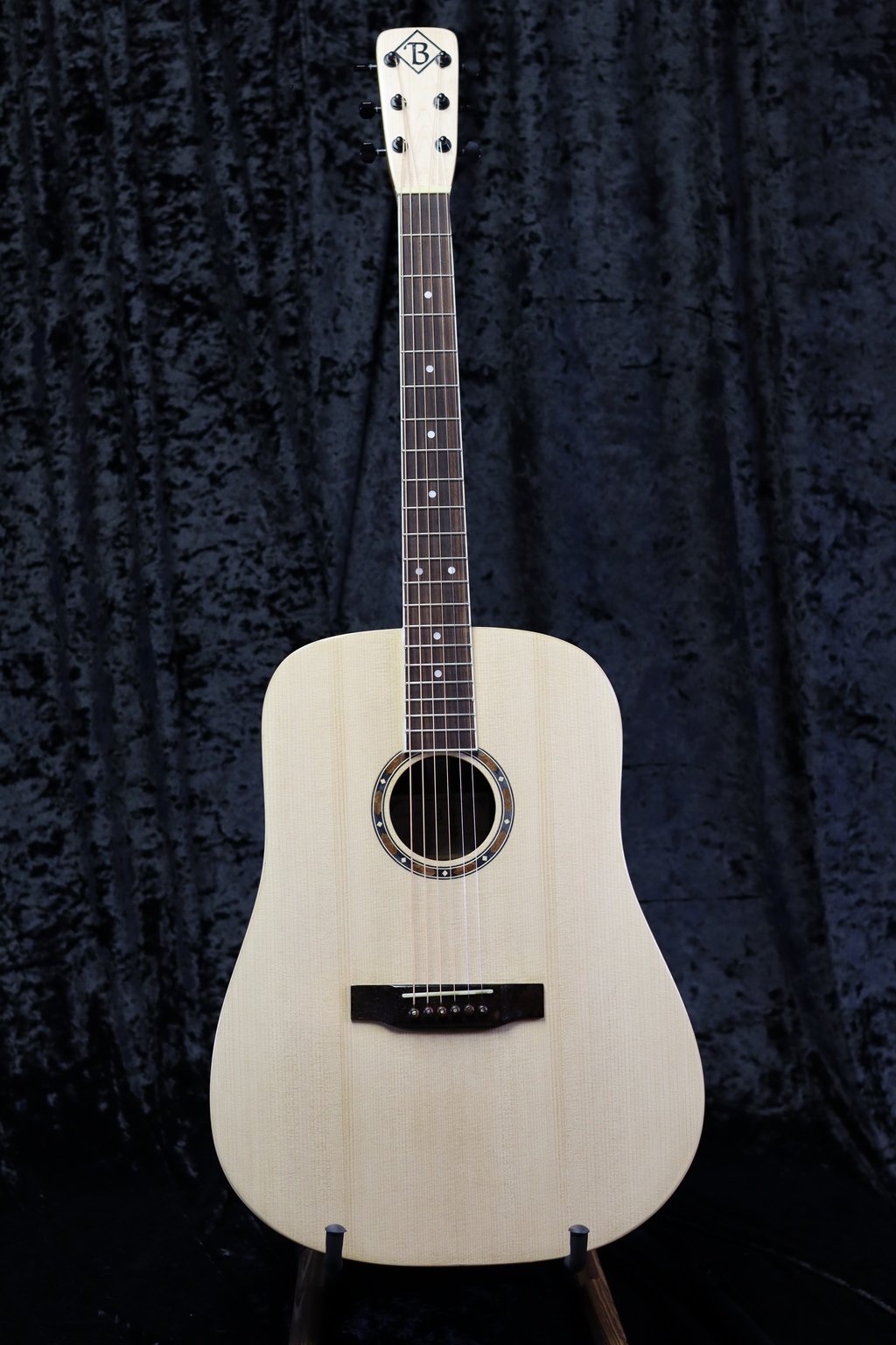 The bracing is a modern Martin X style pattern using Sitka Spruce for bother the top and back backing for vibrant tones.