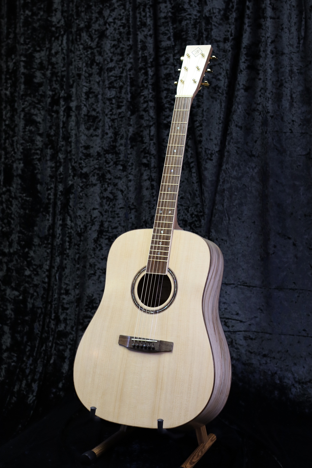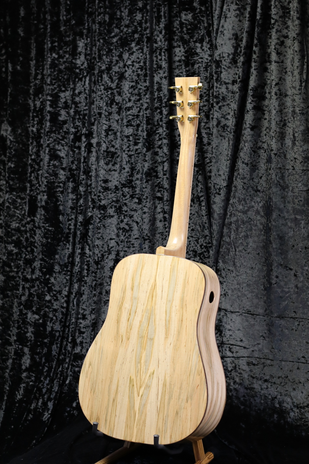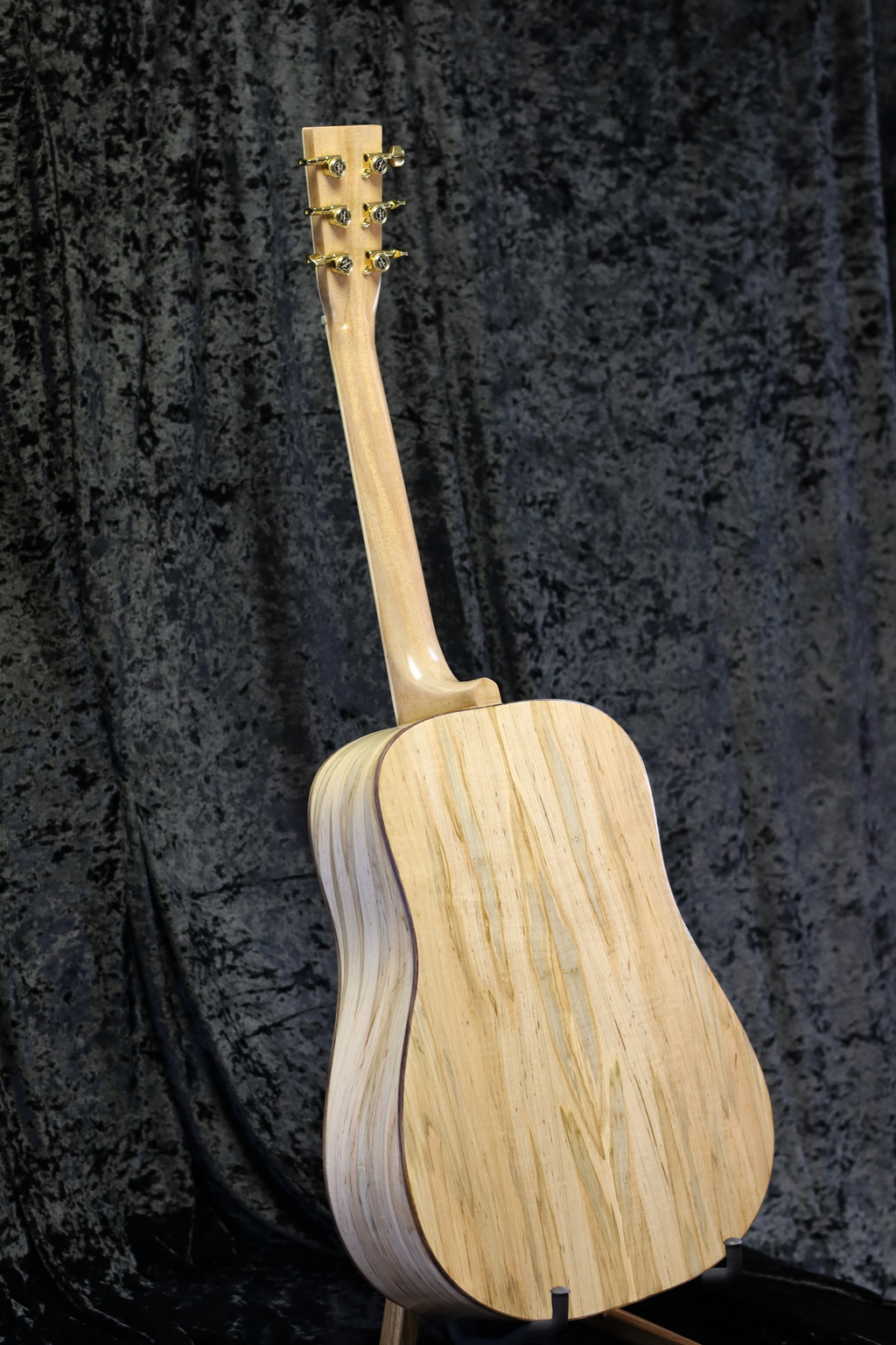 The neck is made from Mahogany with a Maple Headstock plate and Guyker Locking tuners.
