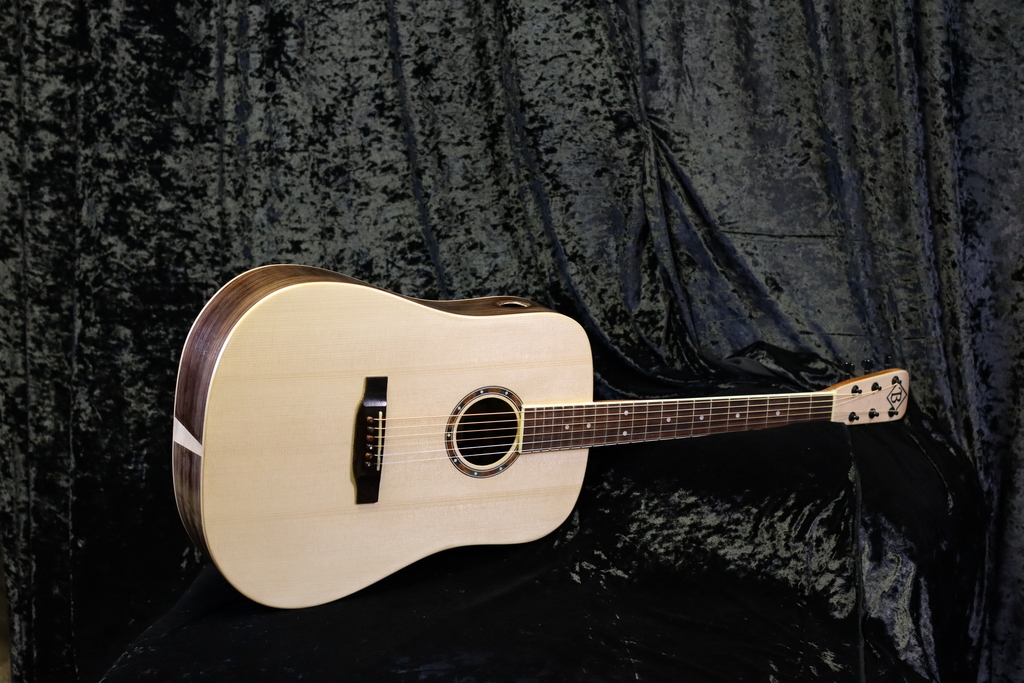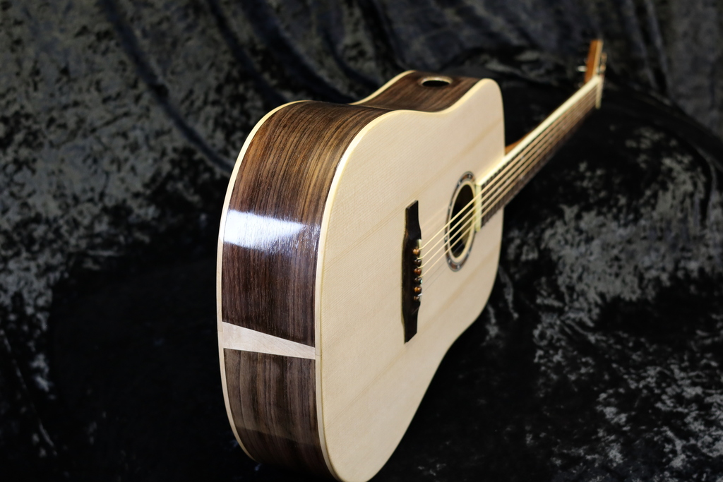 The Modern Player is an all solid wood guitar made using Sitka Spruce for the top soundboard, and Indian Rosewood for the back and sides.